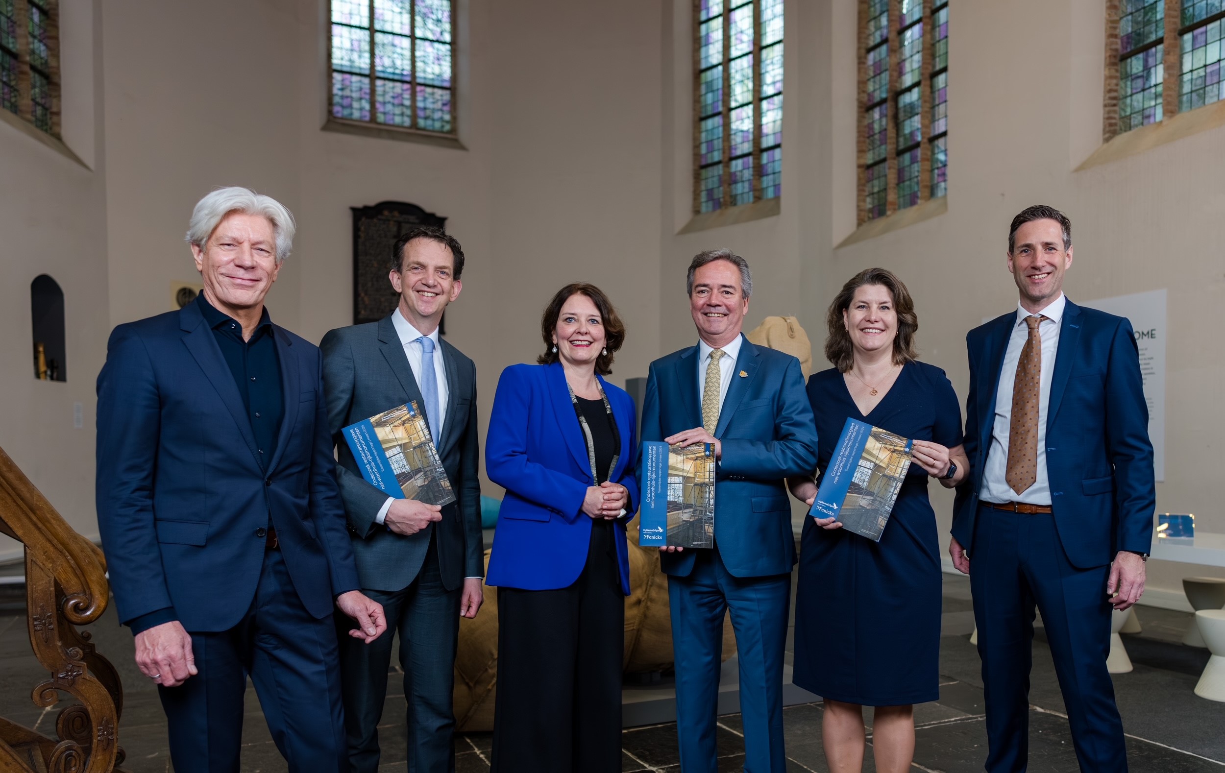 Overhandiging tussenrapportage restauratiebehoefte aan Fleur Gräper-van Koolwijk, demissionair Staatsecretaris Cultuur en Media door Jan-Hylke de Jong (Fenicks BV) en Ben Verfürden (Hylkema Erfgoed).