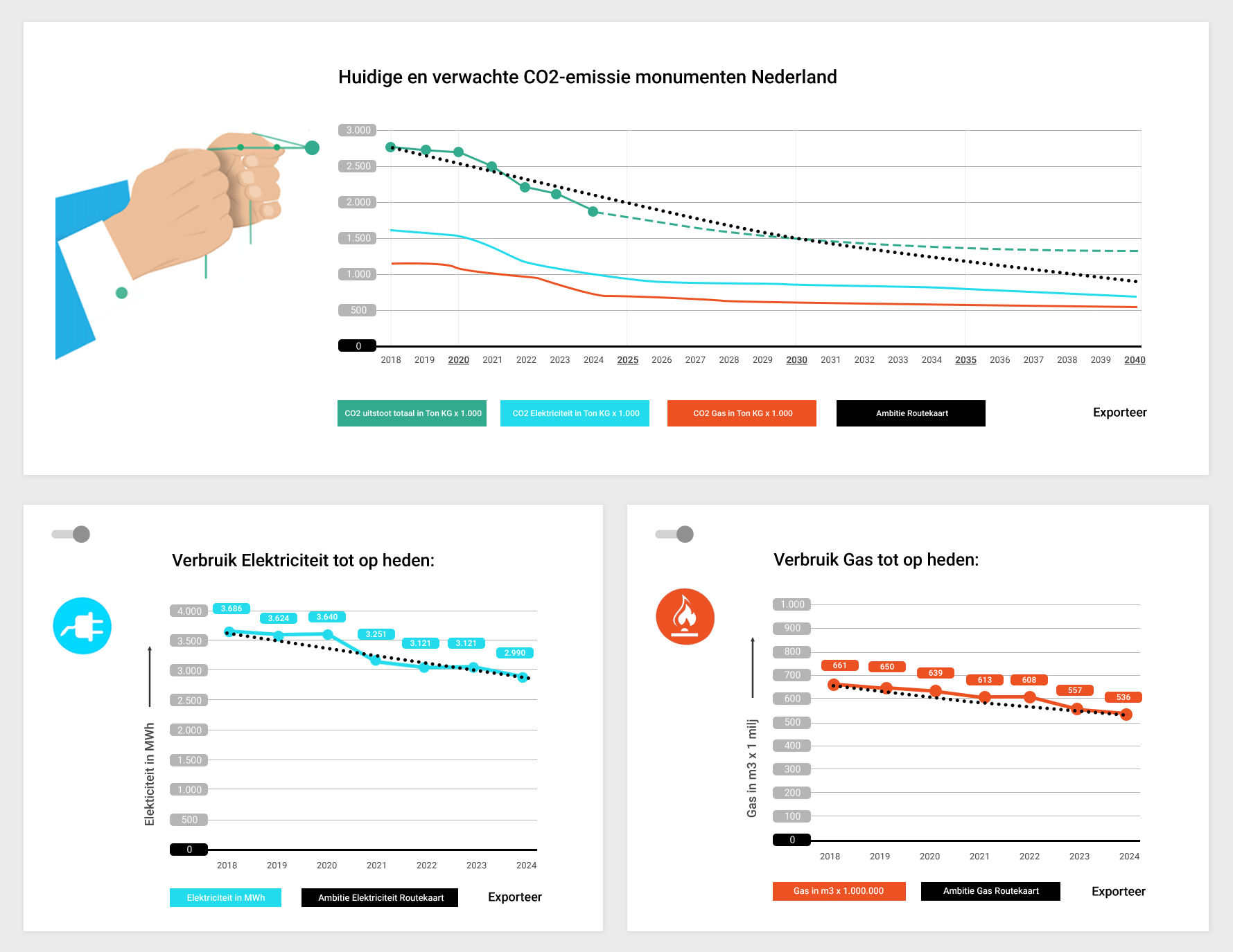 Welke monumenten of karakteristieke gebouwen verbruiken veel energie? Wat is de CO2-emissie van een specifieke groep gebouwen? Worden de klimaatdoelstellingen behaald? Fenicks monitort het energieverbruik van monumenten en haalt in het veld warmtebeelden op. Alle informatie wordt ontsloten in via een online dashboard.